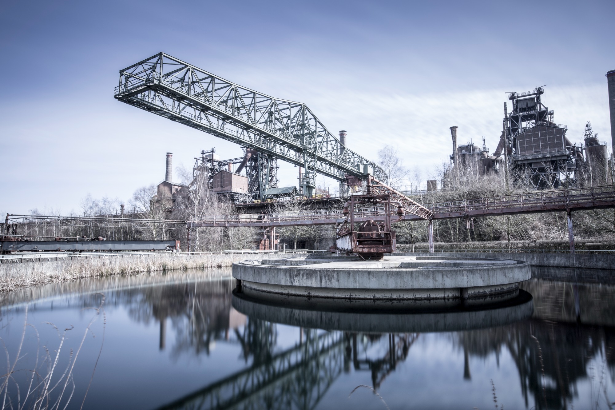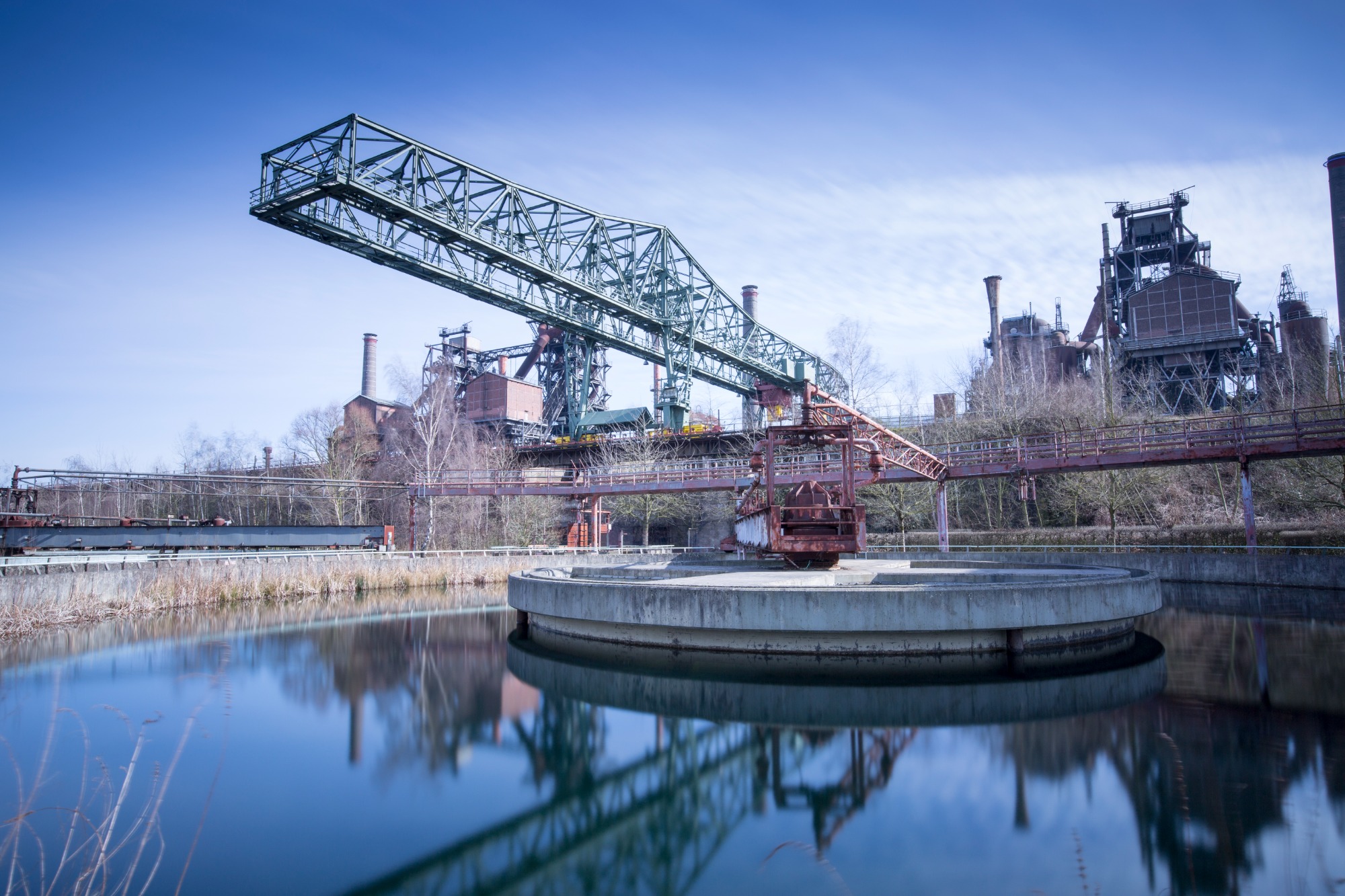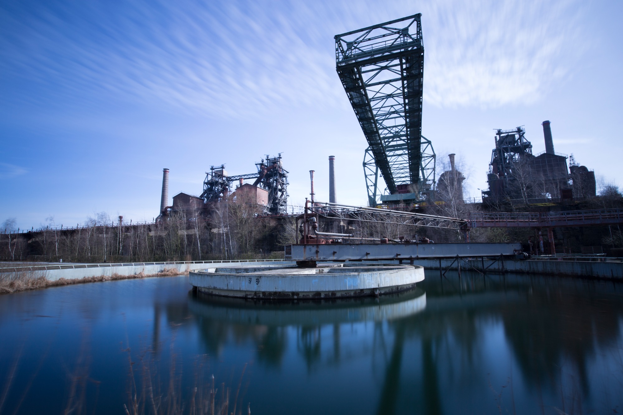 The Landschaftspark Duisburg-Nord is a public park in the German city of Duisburg. The centerpiece of the park is the ruins of a blast furnace complex that was shut down in 1985.